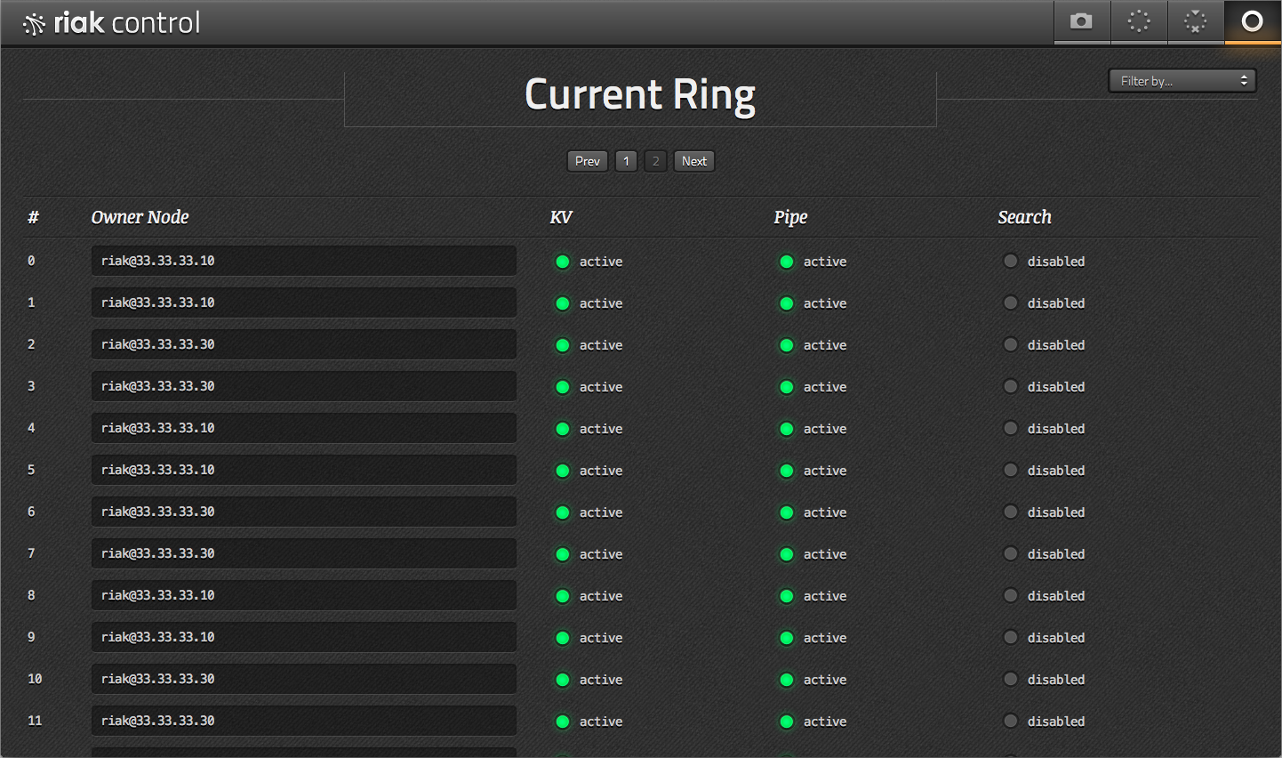 Most of the time, your ring will be too large to effectively manage from the ring view. That said, with filters you can easily identify partition ownership, unreachable primaries, and in-progress handoffs.