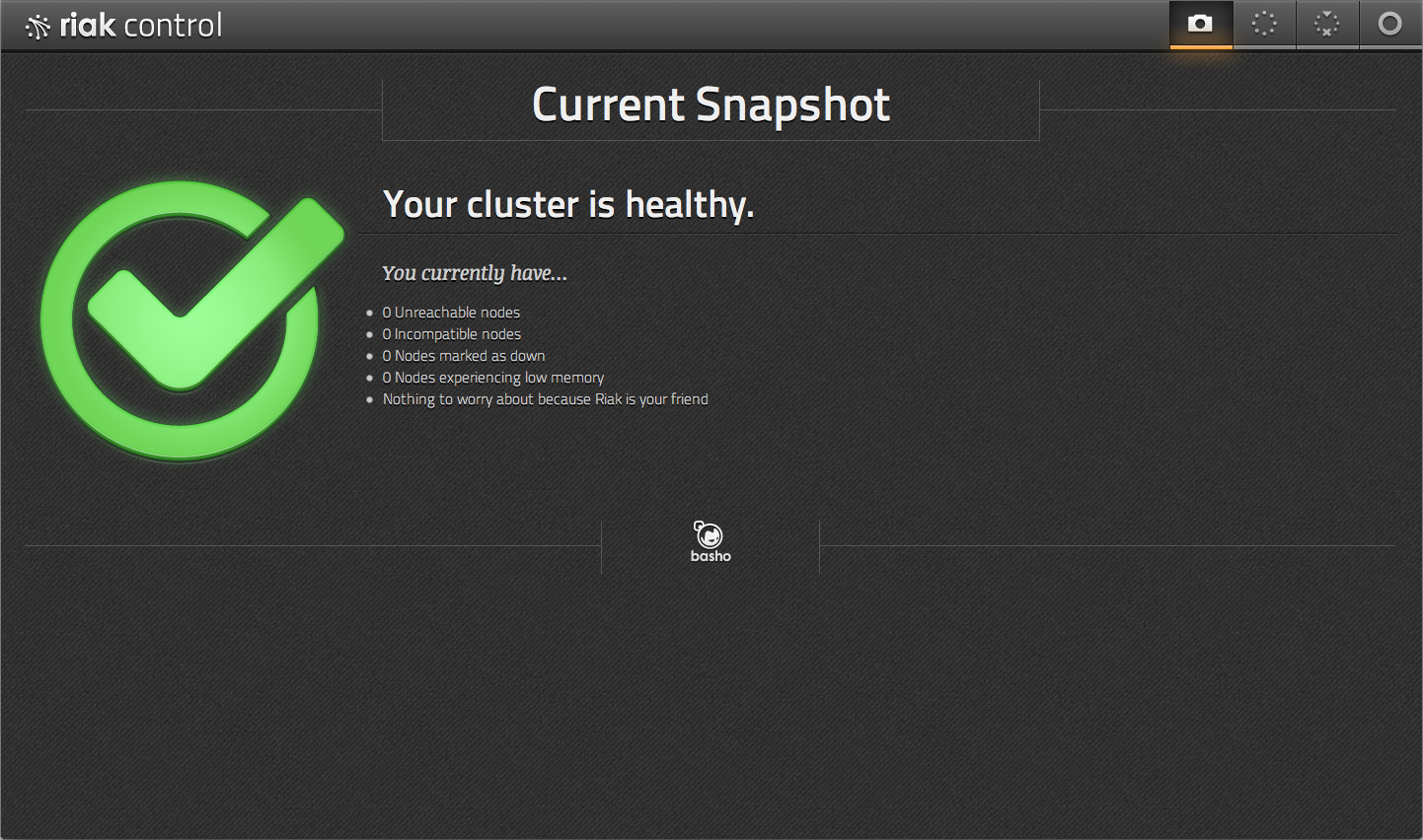 When you first navigate to Riak Control, you will land on the Snapshot view: